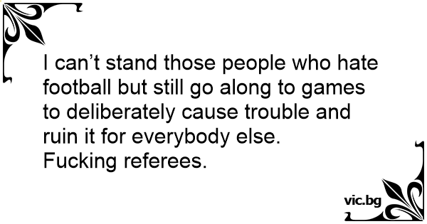 I can’t stand those people who hate football but still go along to games to deliberately cause trouble and ruin it for everybody else.