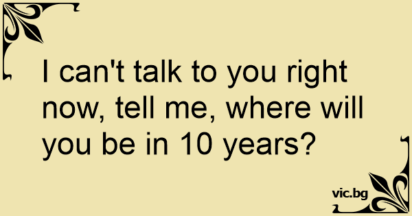 I can't talk to you right now, tell me, where will you be in 10 years?