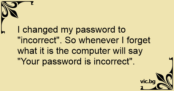 I changed my password to "incorrect". So whenever I forget what it is the computer will say "Your password is incorrect".