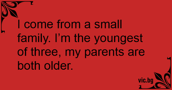 I come from a small family. I’m the youngest of three, my parents are both older.