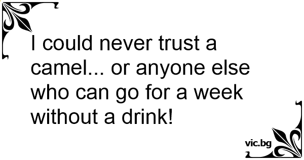 I could never trust a camel... or anyone else who can go for a week without a drink!