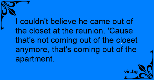 I couldn't believe he came out of the closet at the reunion. 'Cause that's not coming out of the closet anymore, that's coming out of the apartment.