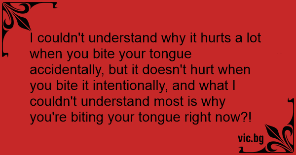 I couldn't understand why it hurts a lot when you bite your tongue accidentally, but it doesn't hurt when you bite it intentionally, and what I couldn't understand most is why you're biting your tongue right now?!