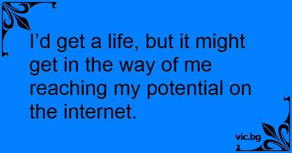 I’d get a life, but it might get in the way of me reaching my potential on the internet.