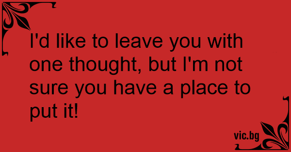 I'd like to leave you with one thought, but I'm not sure you have a place to put it!