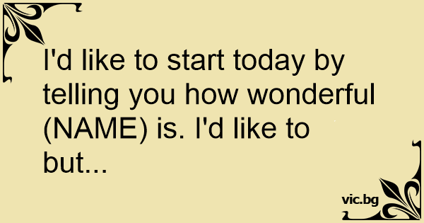 I'd like to start today by telling you how wonderful (NAME) is. I'd like to but...