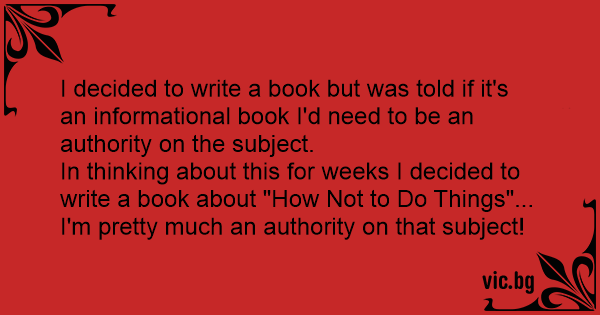 I decided to write a book but was told if it's an informational book I'd need to be an authority on the subject.