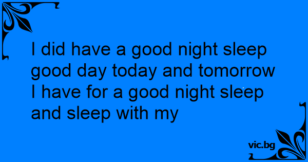 I did have a good night sleep good day today and tomorrow I have for a good night sleep and sleep with my
