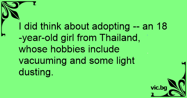 I did think about adopting -- an 18-year-old girl from Thailand, whose hobbies include vacuuming and some light dusting.
