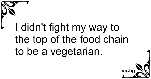 I didn't fight my way to the top of the food chain to be a vegetarian.