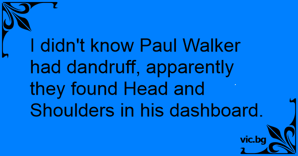 I didn't know Paul Walker had dandruff, apparently they found Head and Shoulders in his dashboard.