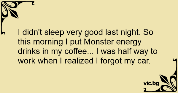 I didn't sleep very good last night. So this morning I put Monster energy drinks in my coffee... I was half way to work when I realized I forgot my car.
