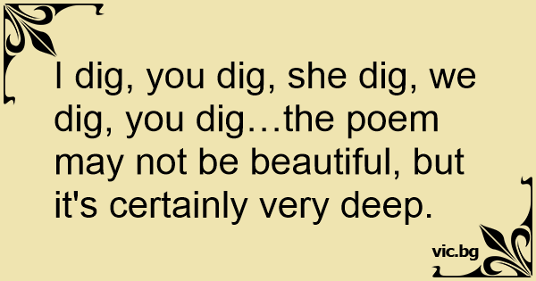 I dig, you dig, she dig, we dig, you dig…the poem may not be beautiful, but it's certainly very deep.