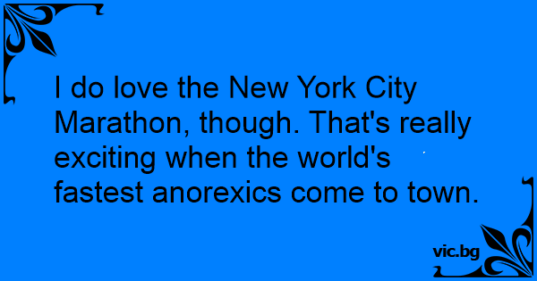 I do love the New York City Marathon, though. That's really exciting when the world's fastest anorexics come to town.