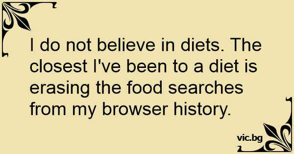 I do not believe in diets. The closest I've been to a diet is erasing the food searches from my browser history.