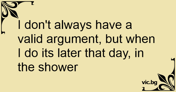 I don't always have a valid argument, but when I do its later that day, in the shower