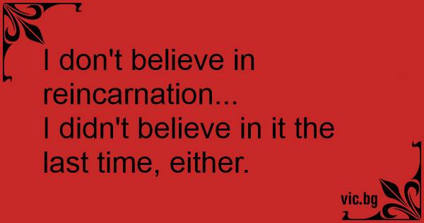 I don't believe in reincarnation...