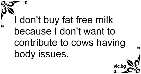 I don't buy fат free milk because I don't want to contribute to cows having body issues.