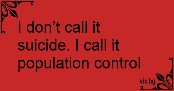 I don’t call it suicide. I call it population control