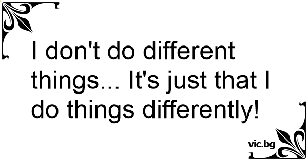 I don't do different things... It's just that I do things differently!