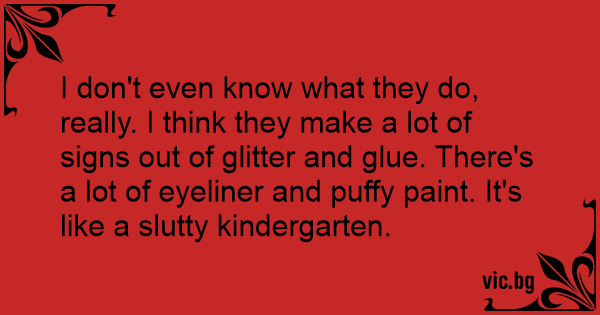 I don't even know what they do, really. I think they make a lot of signs out of glitter and glue. There's a lot of eyeliner and puffy paint. It's like a slutty kindergarten.