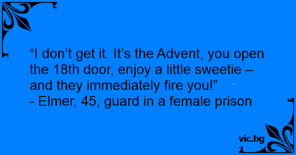 “I don’t get it. It’s the Advent, you open the 18th door, enjoy a little sweetie – and they immediately fire you!”