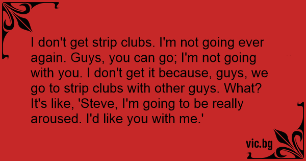 I don't get sтriр clubs. I'm not going ever again. Guys, you can go; I'm not going with you. I don't get it because, guys, we go to sтriр clubs with other guys. What? It's like, 'Steve, I'm going to be really aroused. I'd like you with me.'