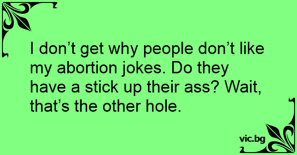 I don’t get why people don’t like my abortion jokes. Do they have a stick up their аss? Wait, that’s the other hole.