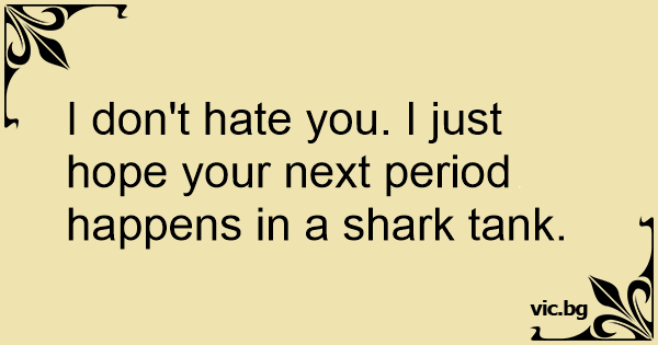 I don't hate you. I just hope your next period happens in a shark tank.