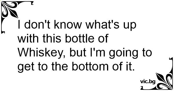 I don't know what's up with this bottle of Whiskey, but I'm going to get to the bottom of it.