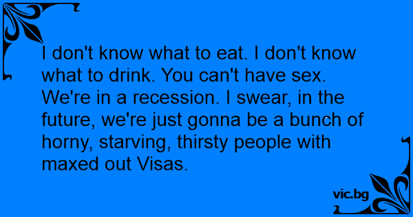 I don't know what to eat. I don't know what to drink. You can't have sеx. We're in a recession. I swear, in the future, we're just gonna be a bunch of hоrny, starving, thirsty people with maxed out Visas.