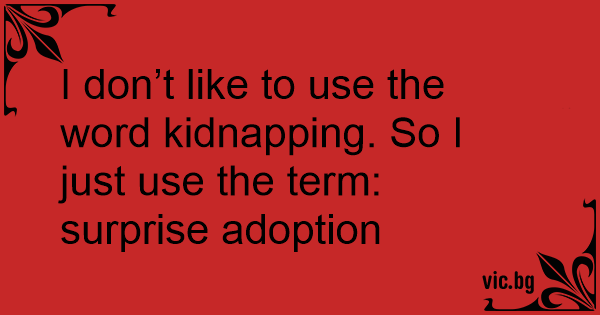 I don’t like to use the word kidnapping. So I just use the term: surprise adoption