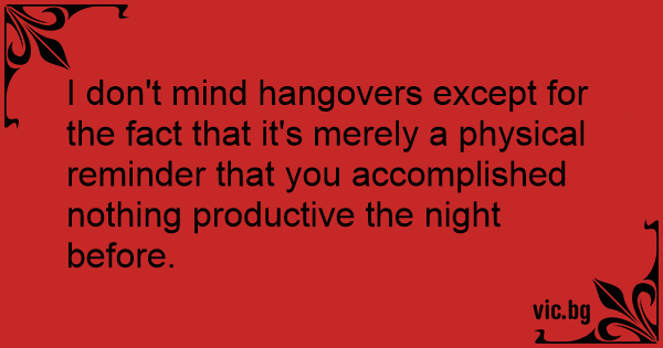 I don't mind hangovers except for the fact that it's merely a physical reminder that you accomplished nothing productive the night before.