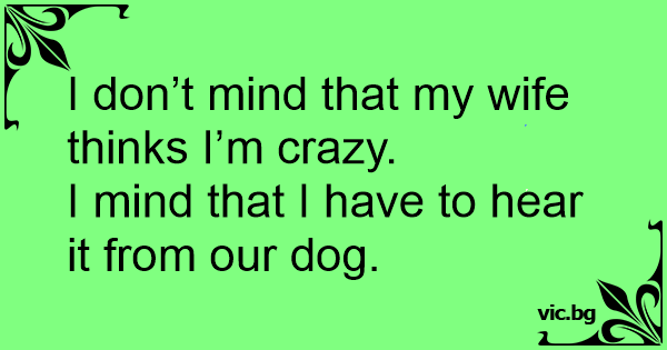 I don’t mind that my wife thinks I’m crazy.