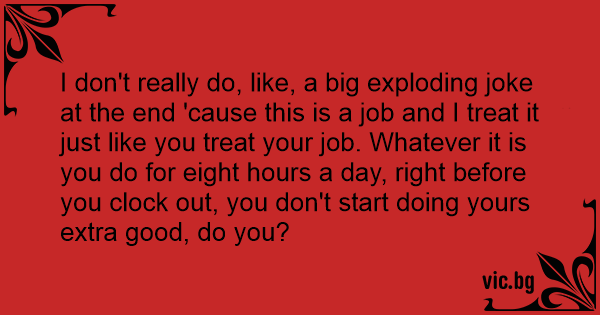 I don't really do, like, a big exploding joke at the end 'cause this is a job and I treat it just like you treat your job. Whatever it is you do for eight hours a day, right before you clock out, you don't start doing yours extra good, do you?