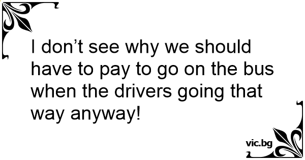 I don’t see why we should have to pay to go on the bus when the drivers going that way anyway!