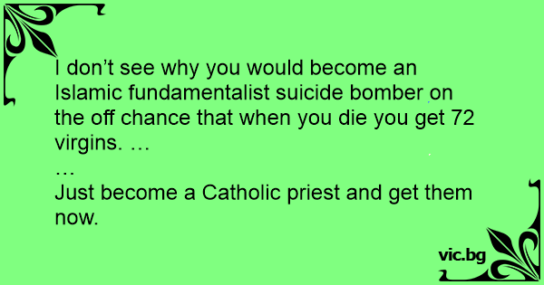 I don’t see why you would become an Islamic fundamentalist suicide bomber on the off chance that when you die you get 72 virgins. …