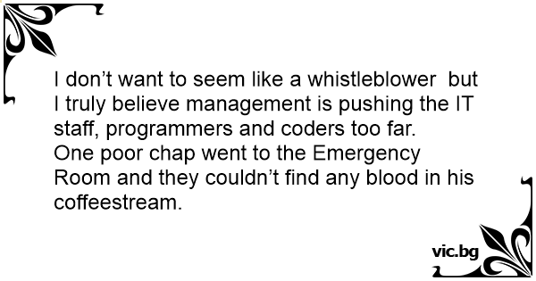I don’t want to seem like a whistleblower but I truly believe management is pushing the IT staff, programmers and coders too far.