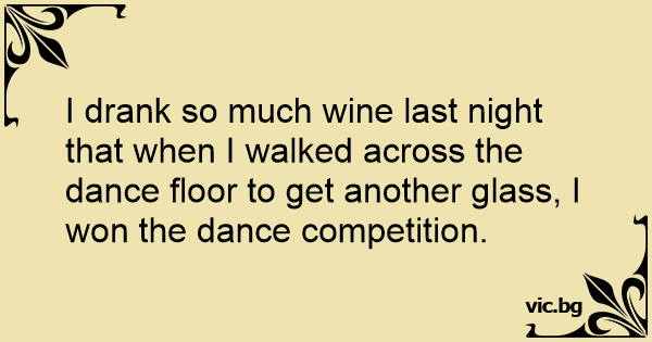 I drank so much wine last night that when I walked across the dance floor to get another glass, I won the dance competition.