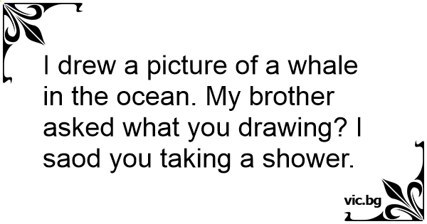 I drew a picture of a whale in the ocean. My brother asked what you drawing? I saod you taking a shower.