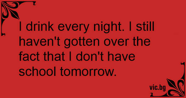 I drink every night. I still haven't gotten over the fact that I don't have school tomorrow.