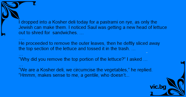 “We are a Kosher deli, we circumcise the vegetables,” he replied.