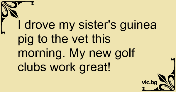 I drove my sister's guinea pig to the vet this morning. My new golf clubs work great!