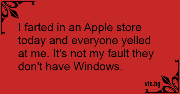 I farted in an Apple store today and everyone yelled at me. It's not my fault they don't have Windows.