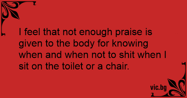 I feel that not enough praise is given to the body for knowing when and when not to shiт when I sit on the toilet or a chair.