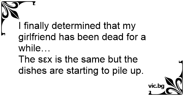 Question: How can you tell if your wife is dead? Answer: The sex will be the same but the dishes will pile up.