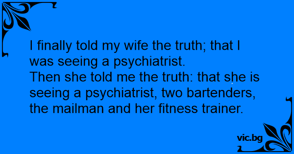 I finally told my wife the truth; that I was seeing a psychiatrist.