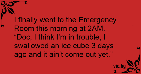 “Doc, I think I’m in trouble, I swallowed an ice cube 3 days ago and it ain’t come out yet.”