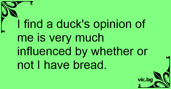 I find a duck's opinion of me is very much influenced by whether or not I have bread.