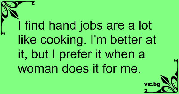 I find hand jobs are a lot like cooking. I'm better at it, but I prefer it when a woman does it for me.